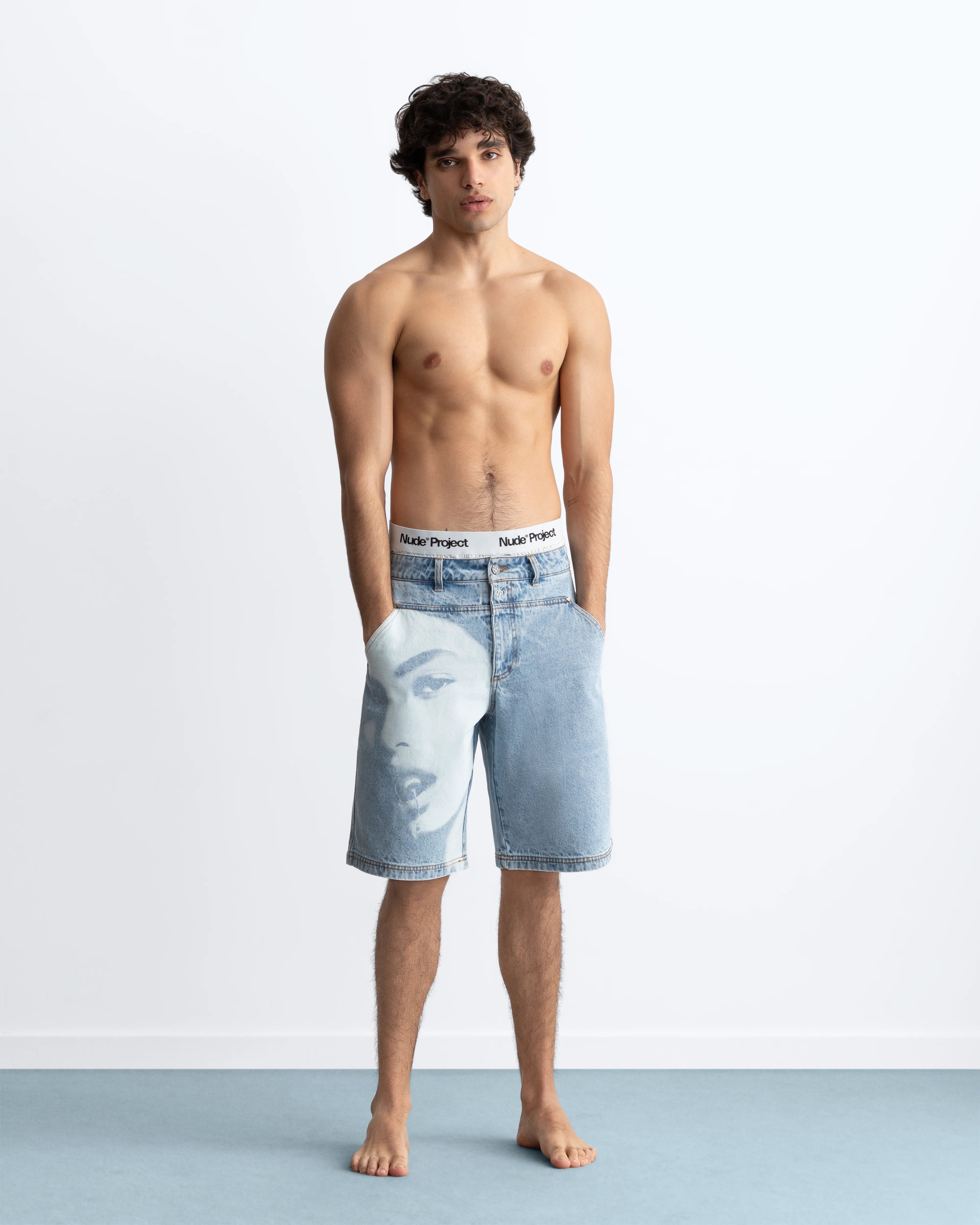 Laser Straight Denim Shorts