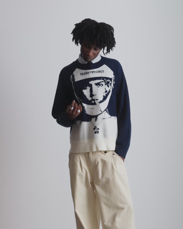 Face Knit Sweater Navy