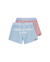 Seersucker boxer with front printed phrase. front logo label and small heart label at the left lower part