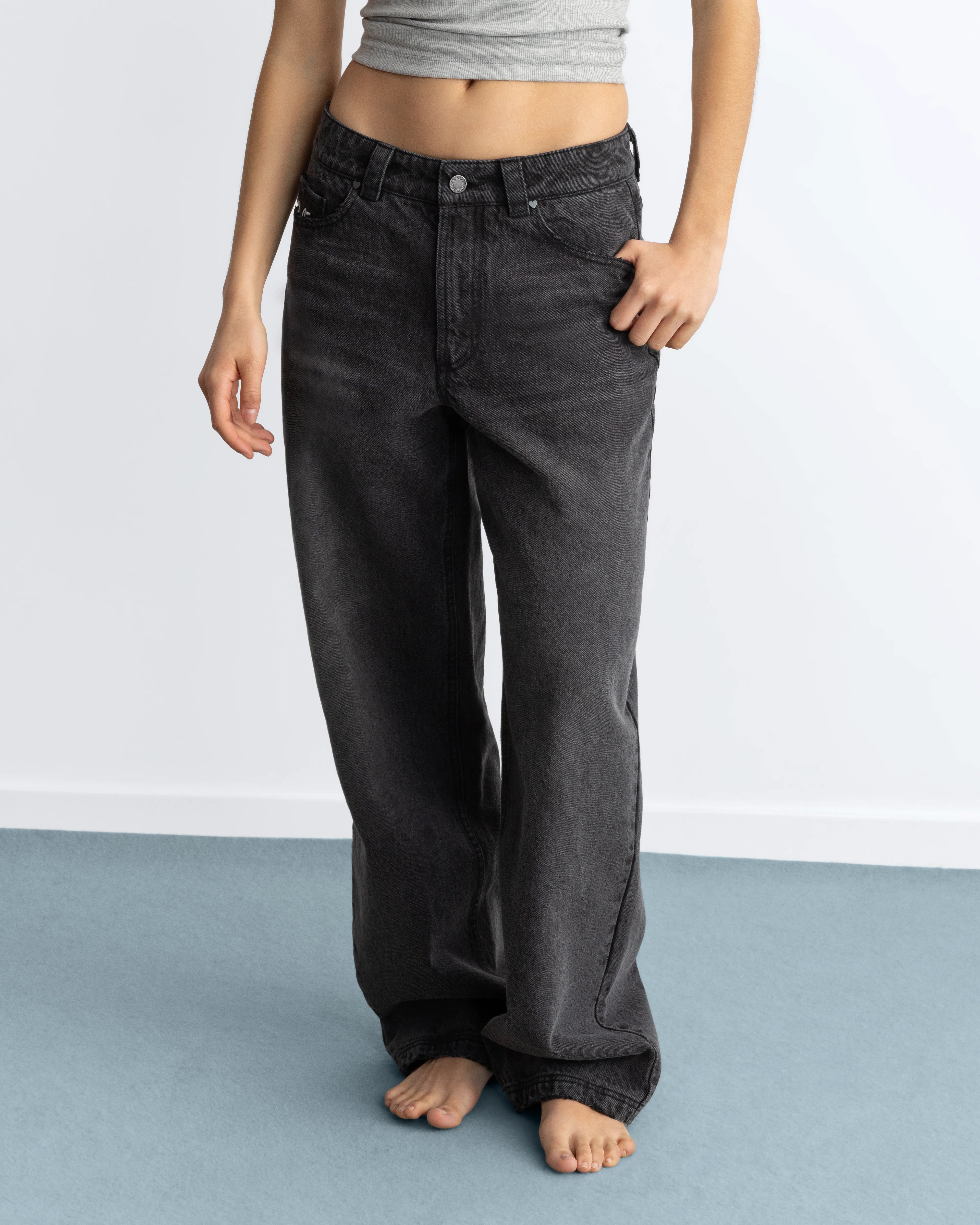Basic Straight Jeans Black-Black