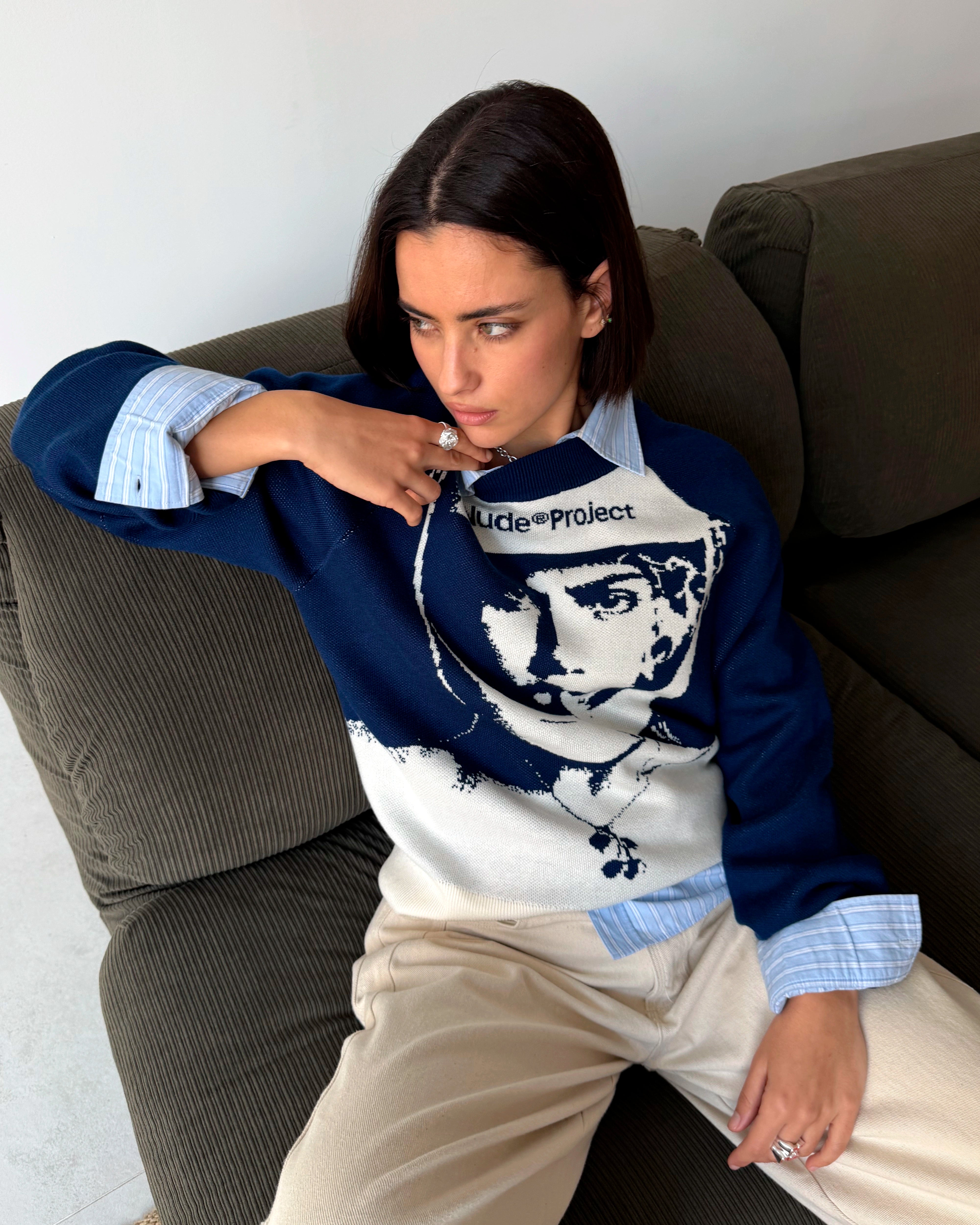 Face Knit Sweater Navy