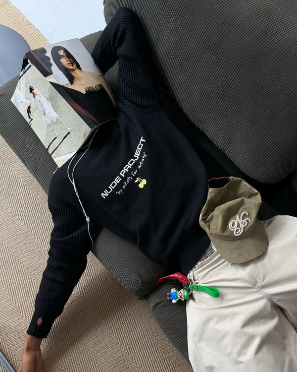 Wavy Knit Sweater Black